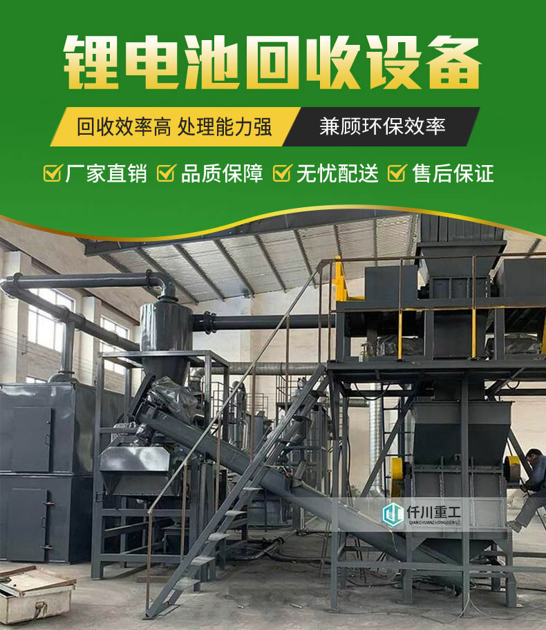 廢舊鋰電池具有很高的回收價值,仟川重工生產固廢處理設備,從保護環(huán)境和資源的再生利用角度出發(fā),將操作簡單且綠色環(huán)保的廢舊鋰電池回收設備處理廢舊鋰電池,整個回收處理過程中對環(huán)境不會造成危害,同時,保證高回收率。